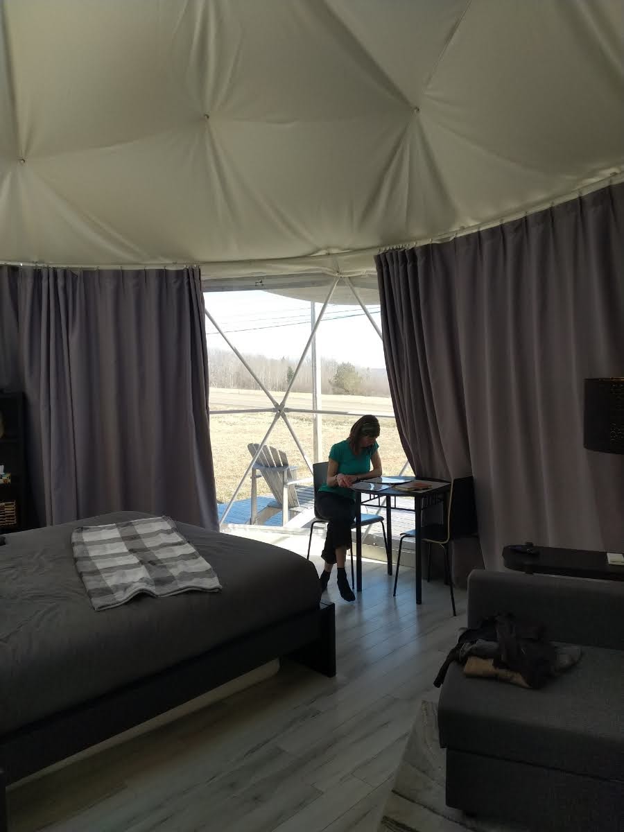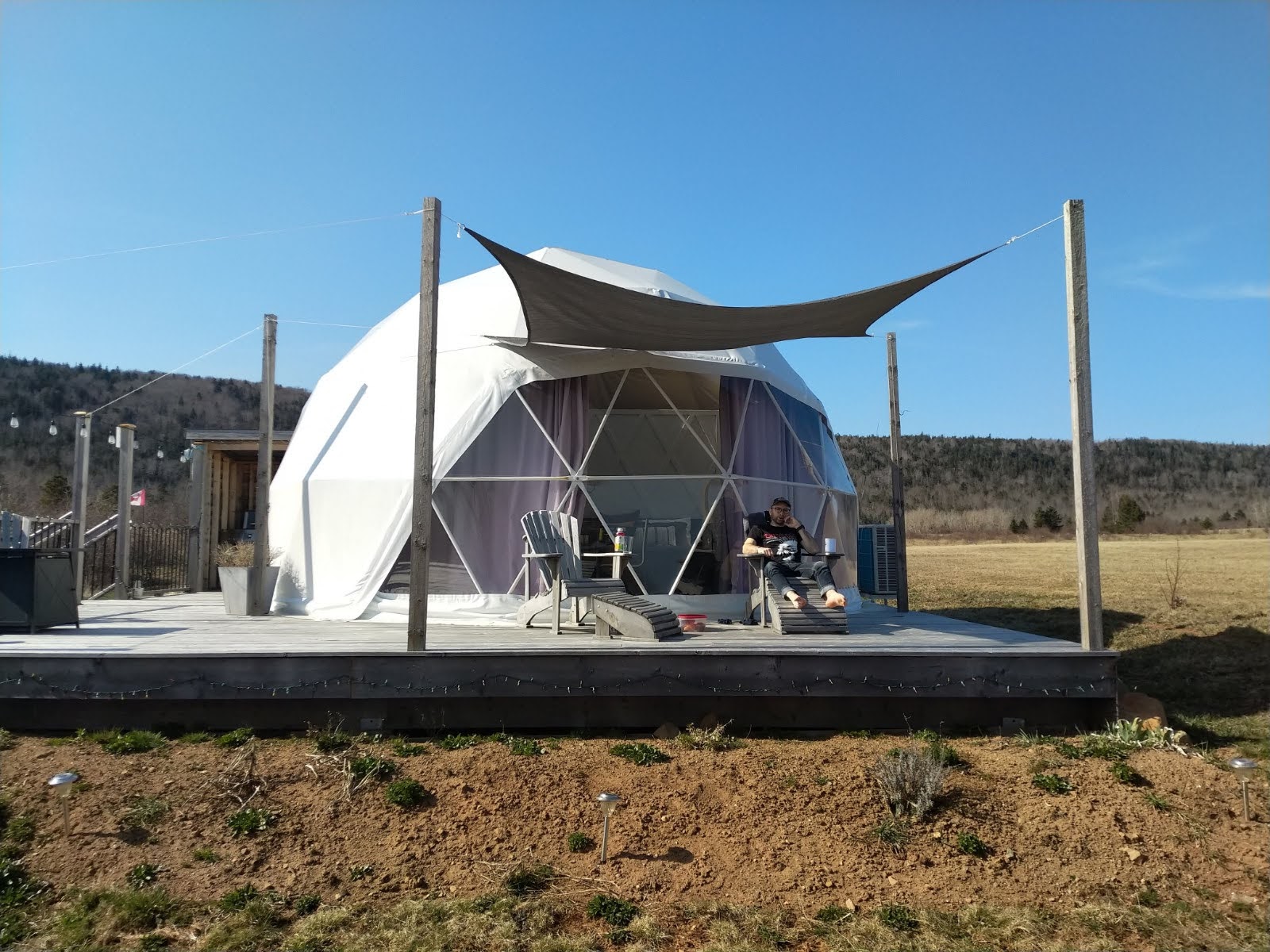 Il a fait tellement chaud le deuxième weekend d’avril que nous sommes allés tester le Camping Glamour, le glamping, à Port Wade, près d’Annapolis Royal. Nous avons passé la nuit dans un dôme géodésique reconverti en « tente » après avoir randonné sur les sentiers Delaps Cove et Charlie’s trail au nord d’Annapolis et fait une dernière cueillette de chaga. La prochaine devra attendre l’hiver prochain (si nous sommes toujours là, mais espérons que non)!