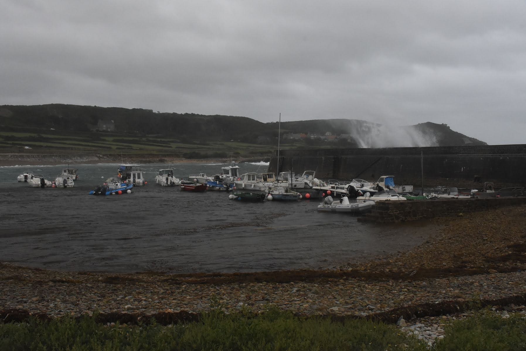 Jour 1, direction le cap de la Hague, le Nez-de-Jobourg et les environs. Honnêtement, nous aurions (j’aurais) renoncé à y aller à vélo : c’est trop vallonné, particulièrement dans les conditions météo du moment. Les rafales de 100 km/h n’ont cependant pas découragé certains cyclistes, auxquels nous tirons notre chapeau. Pour notre part, nous avons tiré le meilleur profit du confort de la voiture et avons mis le nez dehors uniquement pour aller admirer ces magnifiques sites. Cela valait vraiment le détour.