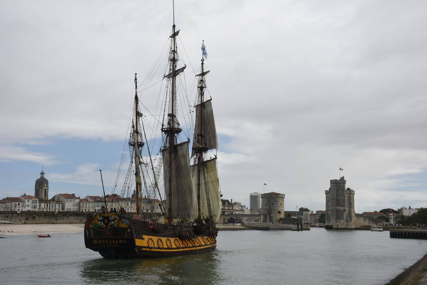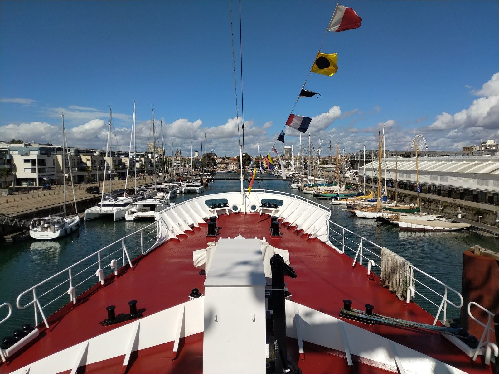 La météo étant menaçante pour les prochains jours, nous décidons d’aller nous mettre au sec. Cela tombe bien, notre prochain arrêt est prévu à la Rochelle. Nous nous dégottons un logement de dernière minute pour deux nuits en plein cœur de la ville, une petite maison étonnante (et humide, hum hum) sous les arcades, et profitons de ces deux jours pour déambuler dans les ruelles. Et comme le temps est effectivement à la pluie, nous nous réfugions au musée du Nouveau Monde (histoire d’apprendre comment les Européens ont découvert le Canada, hé hé) et au musée maritime (histoire de monter encore à bord d’un bateau. Non, de trois bateaux. On y prend goût…). Nous nous sommes même fait une petite séance de cinéma le temps d’une averse. Nous avons regardé et aimé Les Feuilles Mortes.