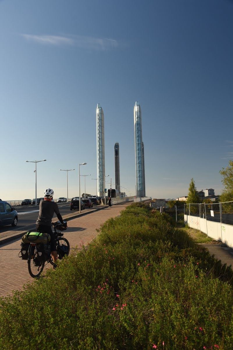 Préfecture de la Gironde, capitale mondiale du vin, Bordeaux, « la belle endormie », nous accueille. On lui a attribué ce surnom en raison de son histoire et de son architecture qui lui donnent la réputation de ville calme et paisible. Mais ce n’est plus le cas. Le renouveau qu’elle a connu depuis 20 ans en fait à présent un lieu hautement dynamique, sur tous les plans. Pour nous qui sommes habitués aux endroits plutôt paisibles, c’est un choc. Et comme dans toute grande ville, à vélo, il faut prendre ses marques. Bordeaux est une ville qui s’apprivoise.