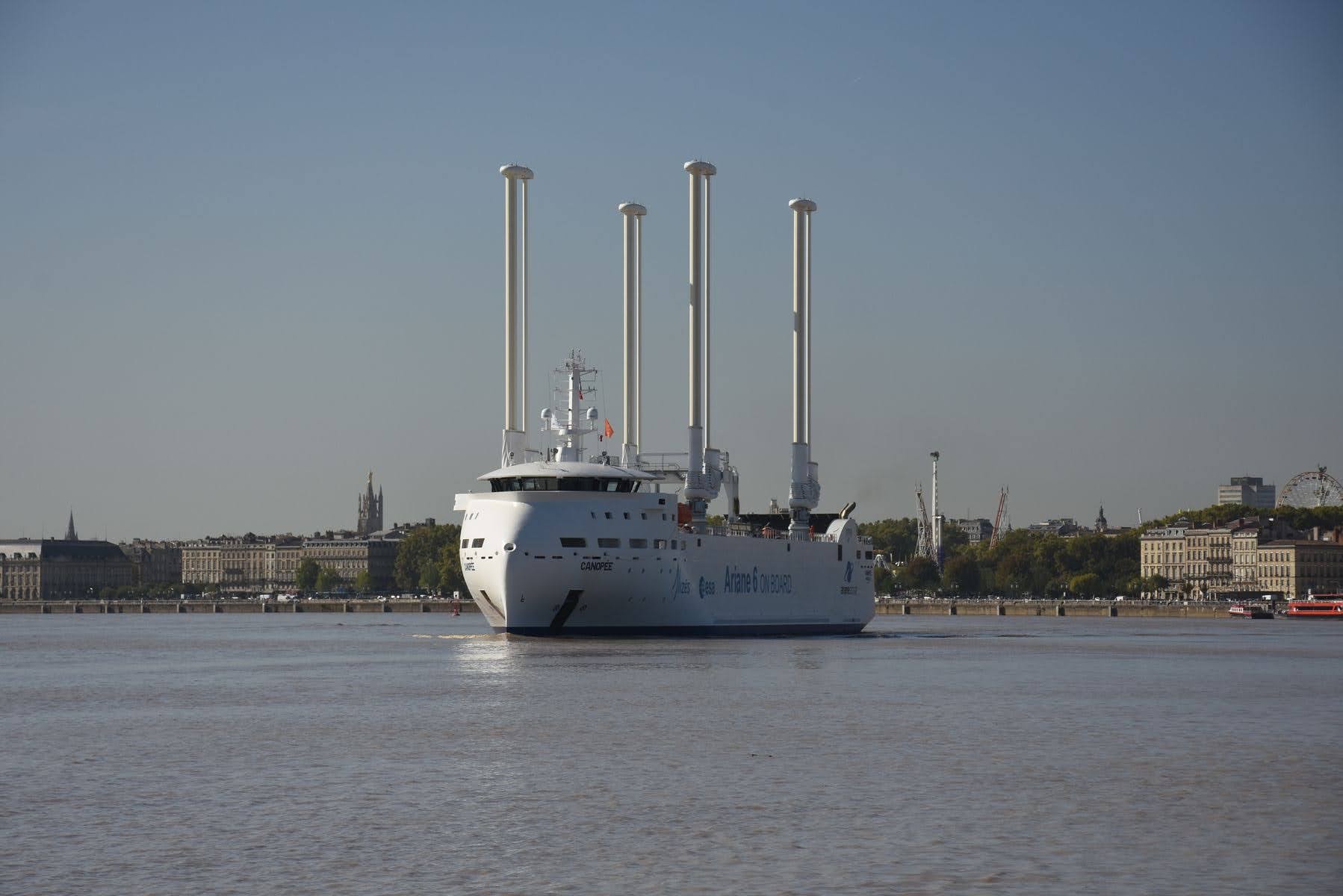 Nous avons eu la chance lors de notre passage de découvrir l’existence du premier porte-conteneur à voile, le Canopée, commandité par le groupe Ariane pour transporter les pièces de la fusée Ariane 6 vers la Guyane de manière plus écologique. En s’aidant du vent, le navire pourra réduire sa consommation de pétrole. Nous l’avons vu se faire baptiser et avons assisté à son grand départ (malheureusement, la voilure n’était pas levée), ce qui était d’autant plus impressionnant qu’il devait passer sous le pont Chaban-Delmas, que nous avons pu voir se lever, pour sortir du port. Nous avons donc admiré deux prouesses techniques en une seule occasion!
