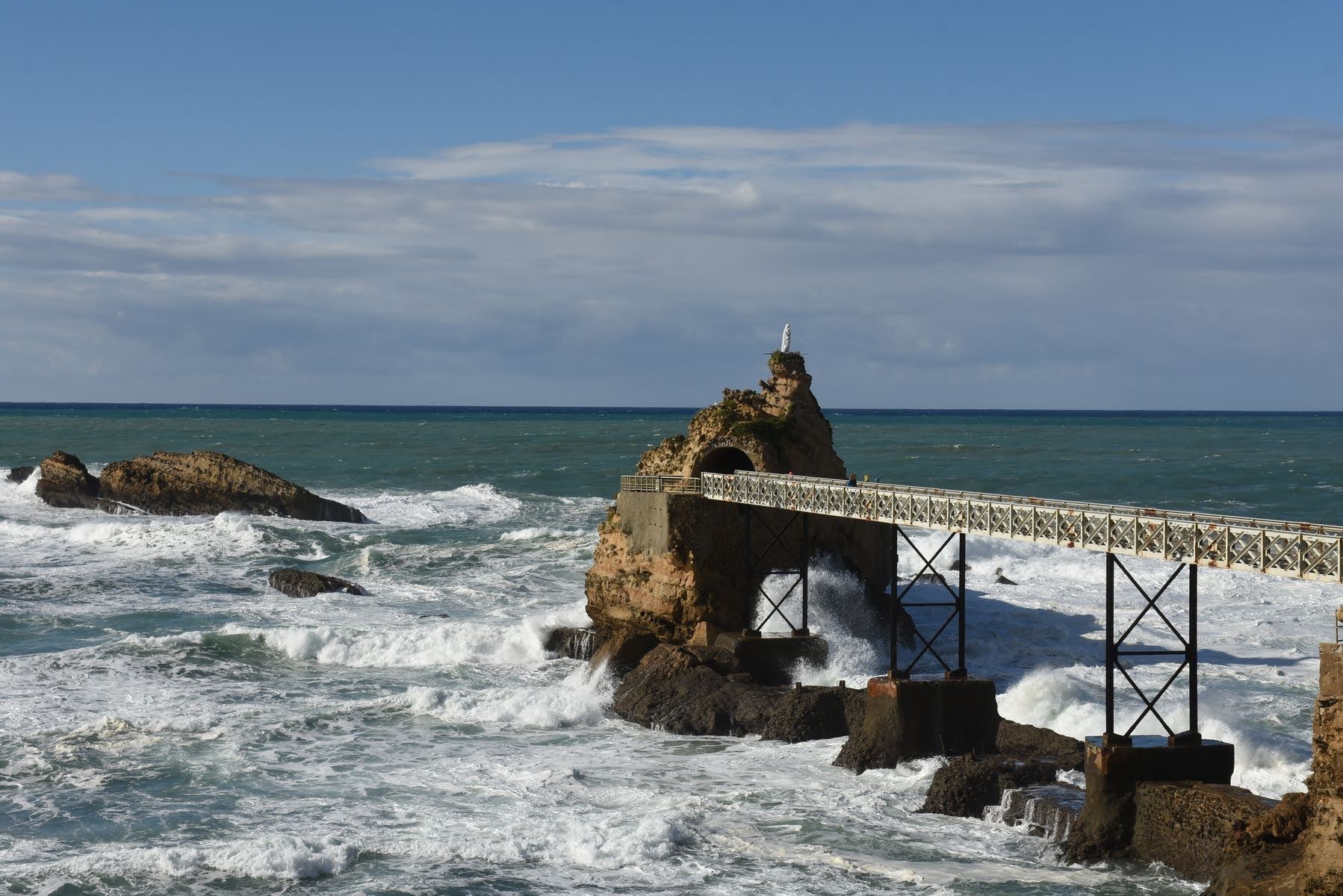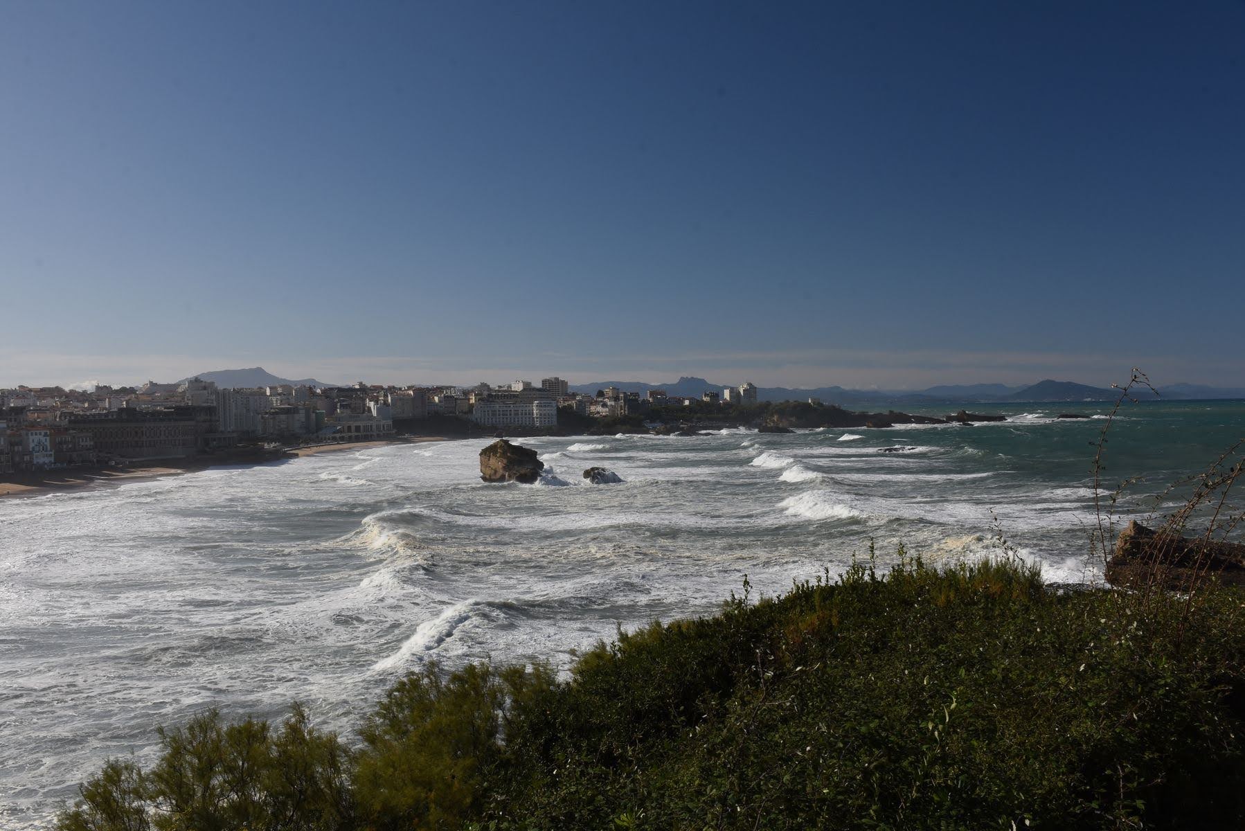 Nous nous déplaçons ensuite, de quelques kilomètres seulement, à Biarritz où nous avons là aussi loué un appartement. Il est très difficile de se loger autrement dans les villes. Les campings sont pratiquement tous fermés, les hôtels ne nous offrent pas les commodités dont nous avons besoin. Bref, nous n’avons pas trop le choix. En contrepartie, il est bien agréable de ne pas avoir à monter et démonter la tente, à faire sécher le matériel, de pouvoir dormir dans un vrai lit et de cuisiner avec de vrais ustensiles des produits variés. Le confort, ça se paye.