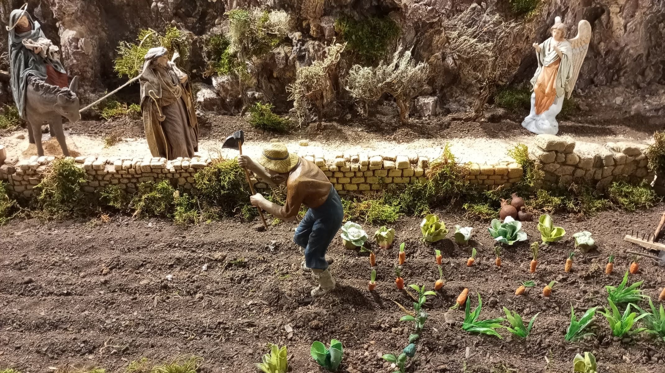 Tiens, il y a la queue pour entrer dans un autre bâtiment, on s’y insère et nous voilà dans le petit train pour admirer une nouvelle crèche napolitaine. Toute aussi longue, on se croirait jouer à Age of Empires!