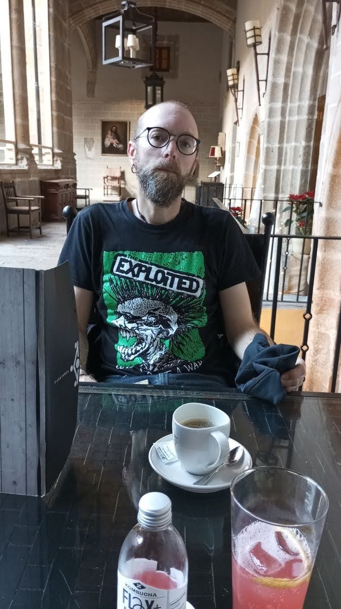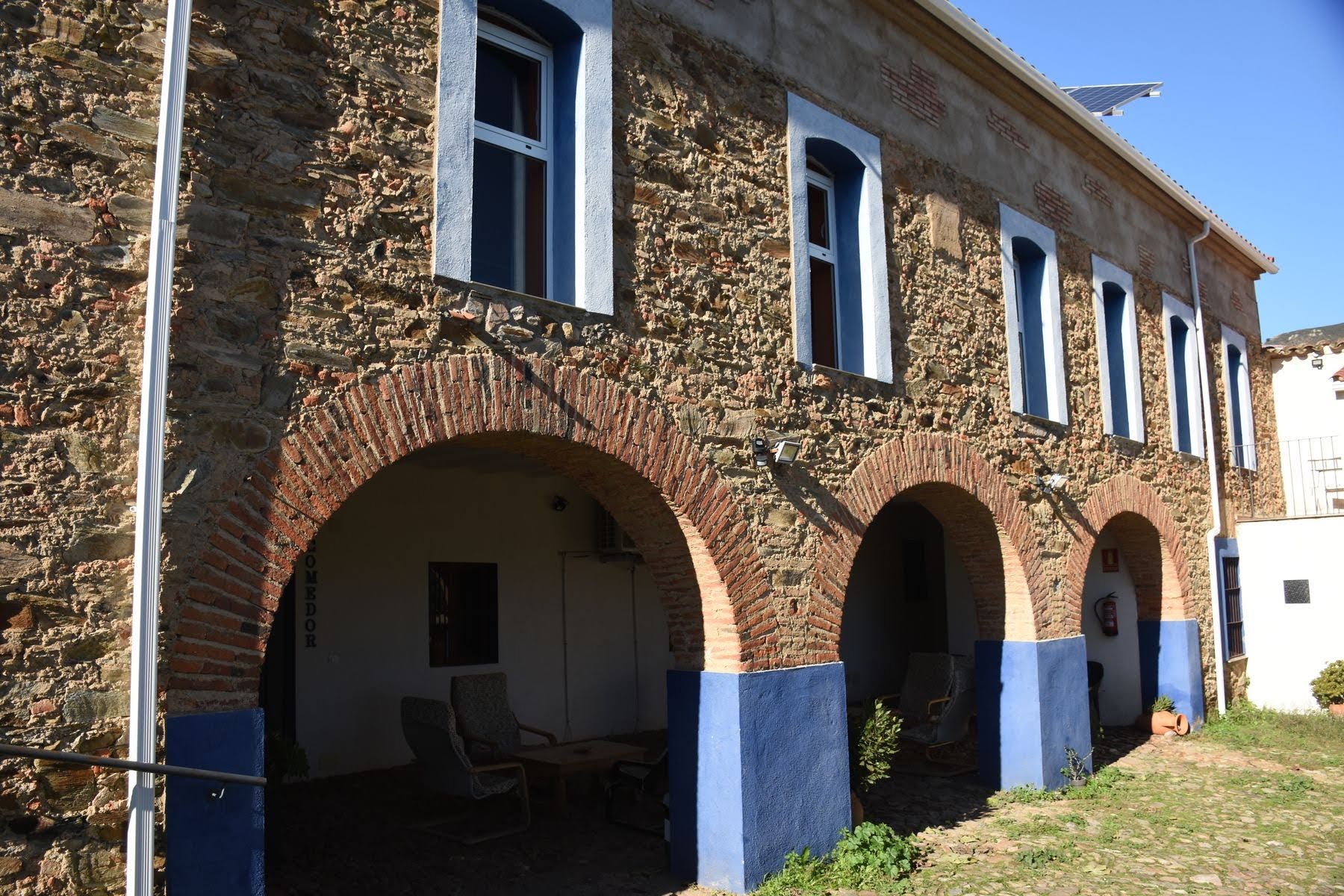 Fin de la voie verte, reprise de la route. Nationale en partie, puis locale par la suite. Jusqu’à Cañaveral, un minuscule village en pleine cambrousse. Mais c’est le seul endroit où nous pouvions nous loger à une distance raisonnable, alors voilà. Et nous ne l’avons pas regretté. Nous avons réservé une chambre dans une super auberge aménagée dans une ancienne ferme – les crochets pour la viande sont encore au plafond. C’est étonnant, mais le lieu a énormément de charme et nous nous y sentons tout de suite à l’aise. D’autant qu’il fait tellement beau que nous profitons de la cour arrière pour faire le plein de vitamine D : pique-nique au soleil et séchage express de vêtements.
