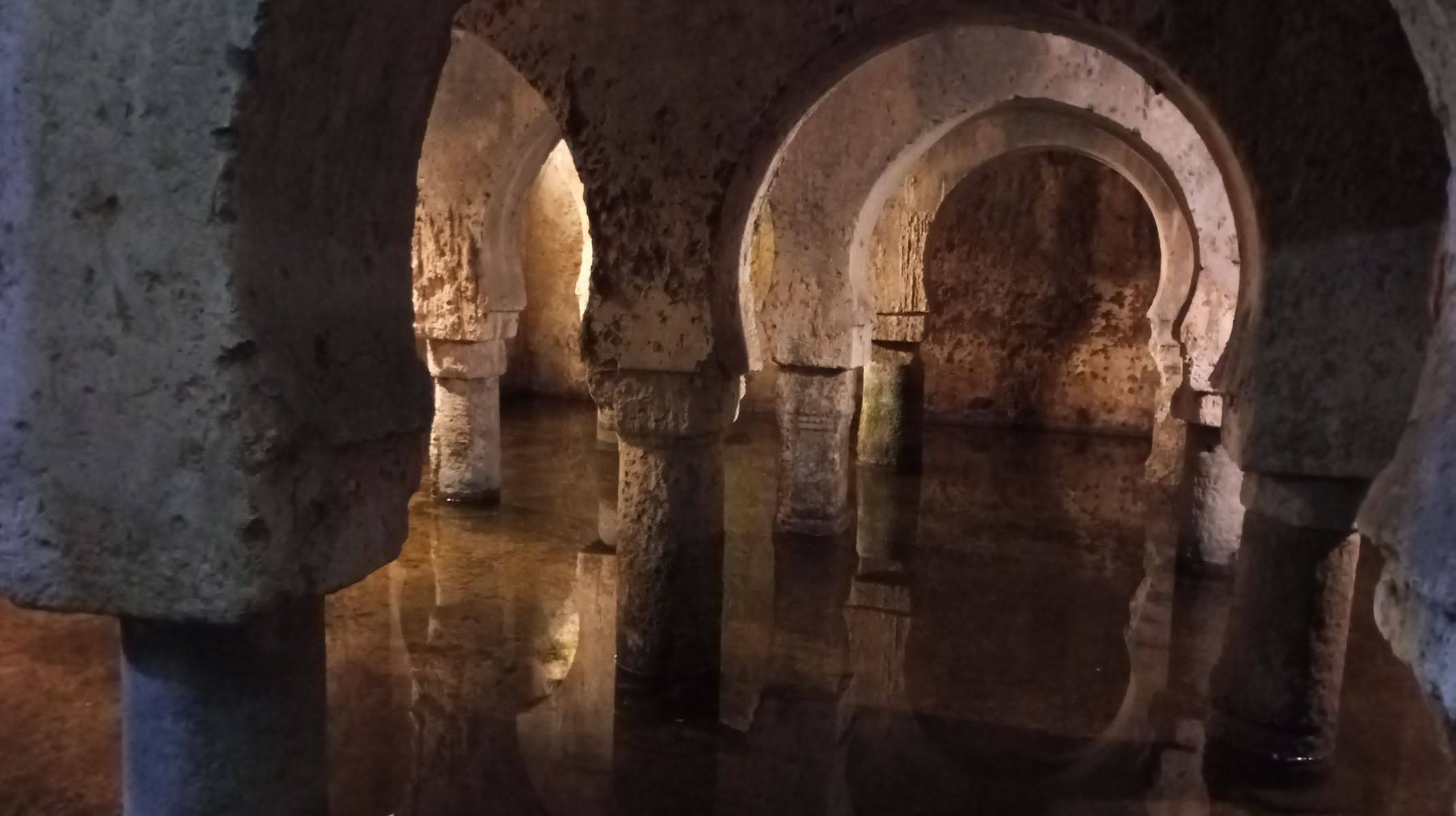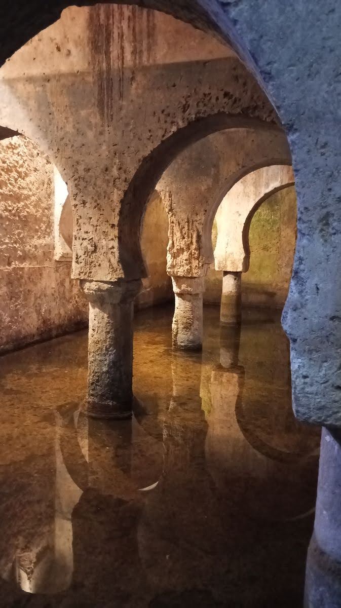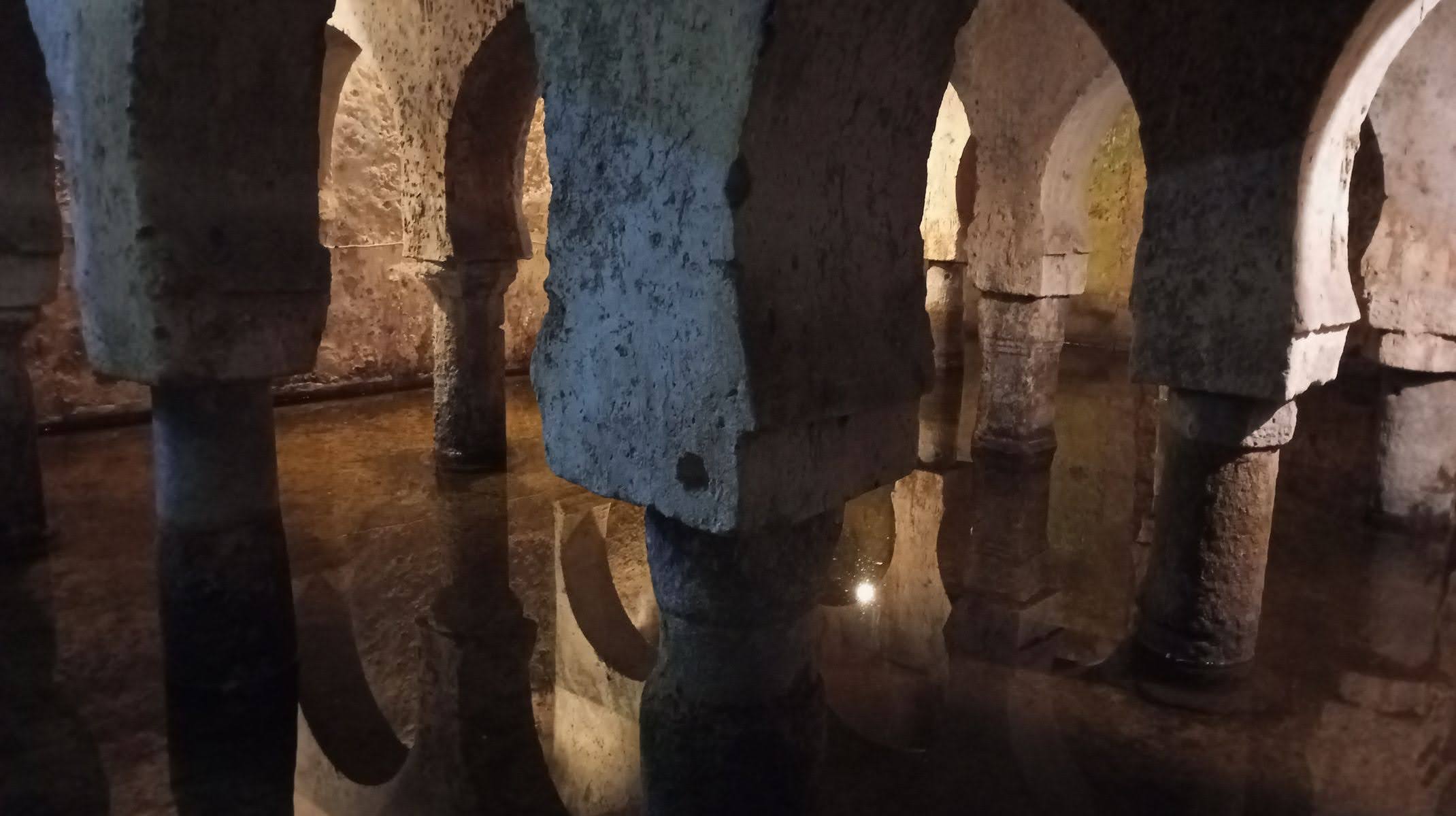 Nous déambulons dans la ville pendant deux jours et irons visiter le musée d’histoire de Cáceres pour aller admirer ce qui fait la spécificité de cette ville : El Aljibe arabe, ou plutôt citerne d’eau potable hispano-musulmane. Depuis qu’elle existe, Cáceres a toujours eu des problèmes d’approvisionnement en eau. Construite sur un pic, elle ne reçoit que peu d’eau. Les arabes ont donc eu l’idée de collecter les eaux de pluie et de construire d’immenses réservoirs en sous-sol afin de garder précieusement cette eau. Malheureusement, il ne reste que très peu de citernes, et seul le palais dans lequel se trouve le musée offre au public la possibilité d’admirer son aljibe. Cette citerne est la mieux conservée d’Espagne, elle recueille encore la pluie qui ruisselle dans la cour Renaissance qui la recouvre, et c’est l’une des plus grandes de son époque. La lumière qui baigne les cinq nefs constituées d’arcs en fer à cheval sublime son caractère spectaculaire. On ne pouvait donc pas passer à côté. La preuve en images…