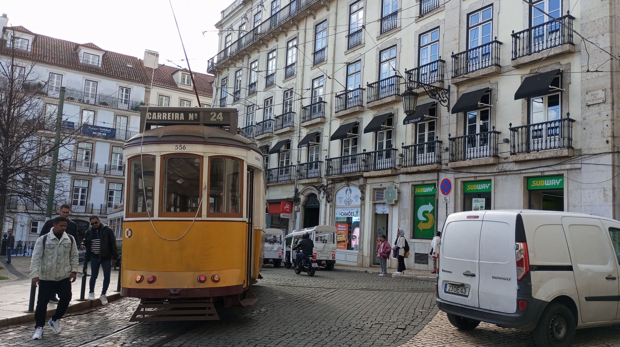 Mais… Lisbonne n’est pas une ville pour les vélos. Les rues sont trop étroites pour que tout le monde puisse circuler sereinement. Ça klaxonne de partout, les rues piétonnes sont bondées, les vélos ne sont pas bienvenus non plus chez nos amis piétons. Et les pistes cyclables… Hormis sur certains grands boulevards et sur les quais, ce ne sont que des petits tronçons ici et là… Étrange mais passe encore.