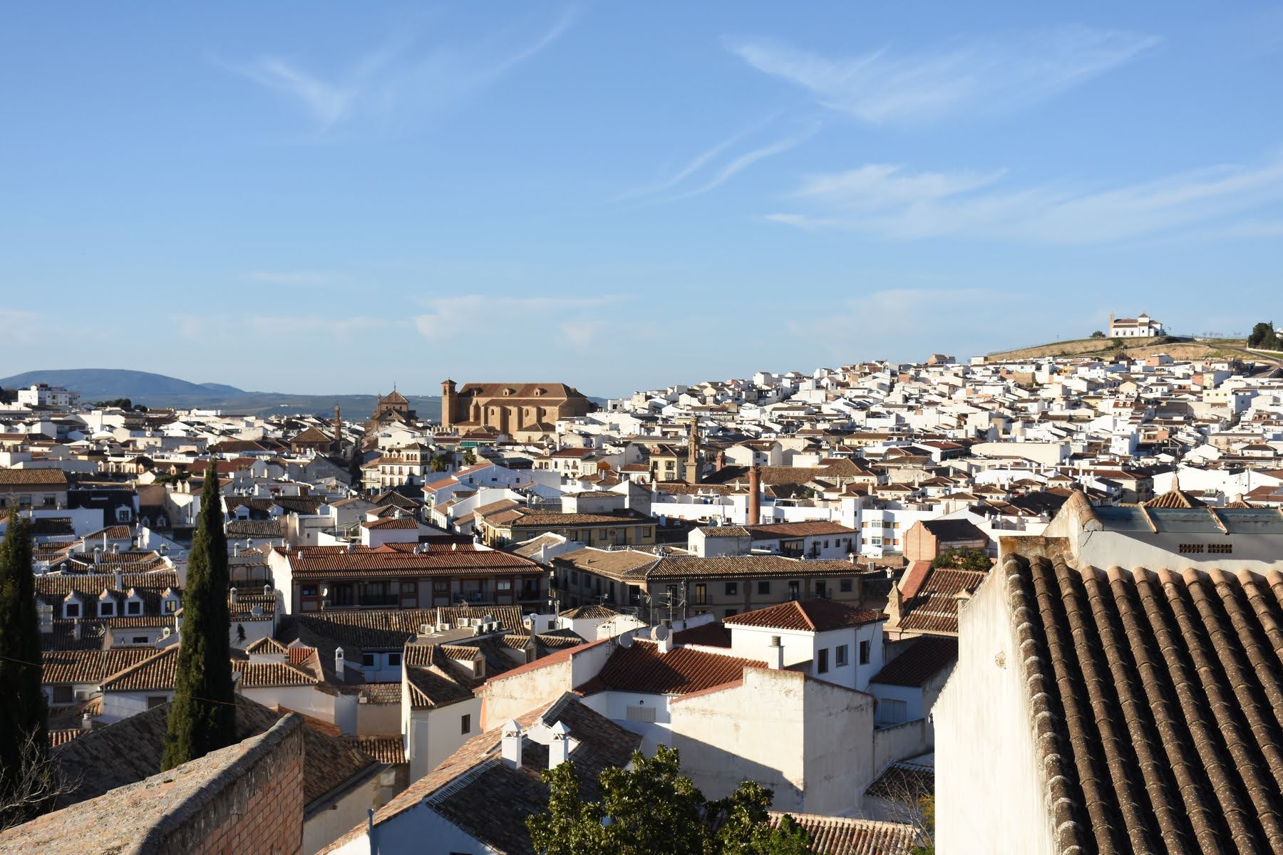 Antequera est une très jolie ville. Nous ne nous attendions pas à cela, mais nous nous retrouvons face à une magnifique alcazaba (forteresse) sur son rocher, surplombant les nombreuses petites places et ruelles en galets, églises et monastères, le tout sur fond de collines et de montagnes. Les touristes ne sont donc pas en reste et, bien que nous soyons dimanche, les rues sont particulièrement animées. Nous profitons d’une terrasse pour boire un jus, puis faisons le tour du quartier historique avant de rentrer à l’hôtel préparer notre journée du lendemain.