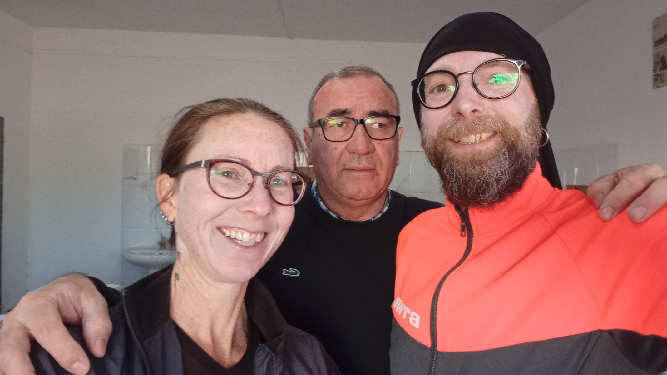 En effet, aujourd’hui, nous prenons la route vers le nord pour Lorca, et le vent ne nous est plus favorable du tout. Et nous avons une belle petite étape de près de 65 km à faire, plutôt en montée. Mais au moins, il fait chaud, alors on rerange les affaires d’hiver et on ressort la crème solaire. Nous quittons donc déjà le littoral et reprenons le chemin des collines désertiques. À mesure que nous avançons, elles sont de plus en plus éparses et laissent la place à d’immenses étendues de cultures. On retrouve les orangers, les citronniers, et les oliviers. Et le hasard fait bien les choses, nous passons devant l’exploitation d’huile d’olive Zurano, qui vend directement au public. C’est parfait, nous étions à sec.