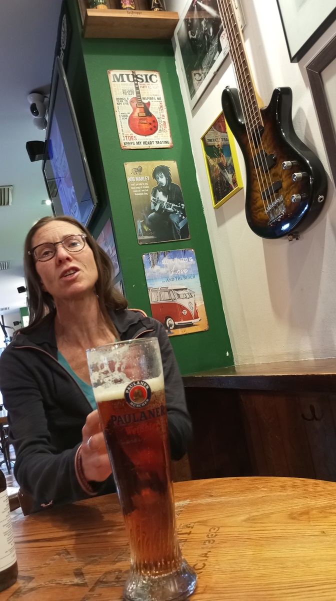 Nous sommes accueillis par le propriétaire, Antonio, qui, entendant notre histoire de cyclotourisme, nous offre la bouteille que nous comptions acheter (en plus grand : 500 ml au lieu de 250, il va falloir caser ça dans les sacoches…), et un pot d’olives fourrées au jalapeño en prime. Il nous fait même promettre de lui envoyer une carte postale lorsque nous arriverons à notre destination finale.