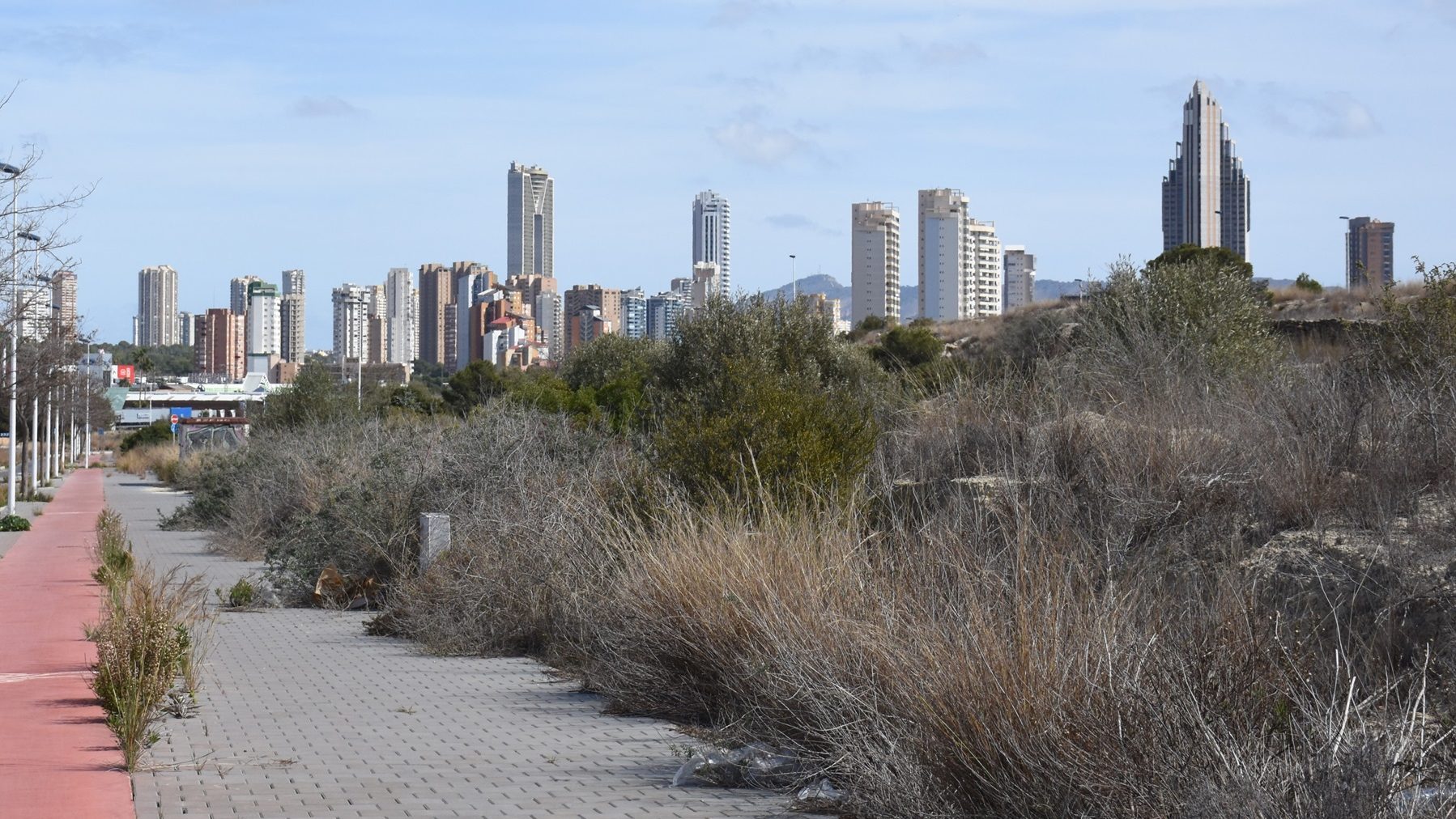 La route n’est pas forcément la plus agréable, c’est une nationale et il y a beaucoup de passage. Nous nous faisons doubler par voitures et pelotons de cyclistes sans arrêt. Nous nous rendons compte que la région est bien plus peuplée que ce à quoi nous étions habitués ces derniers temps. Heureusement, lorsque l’on regarde au loin, ce sont des pics rocheux que l’on voit, et de l’autre côté, la Méditerranée bien bleue sous le soleil. C’est le combo gagnant, et la raison pour laquelle la Costa Blanca est prise d’assaut. Nous sommes choqués à notre arrivée à Benidorm, que nous ne connaissions que de nom, de voir l’étendue de l’urbanisation de cette ville. Nous avons l’impression d’arriver dans une ville américaine. Tout n’est que centre commerciaux et grandes enseignes (une succession de Leroy Merlin et Carrefour, entre autres) sur des kilomètres, puis ce qui ressemble à la « city » et ses buildings tous plus hauts les uns que les autres.