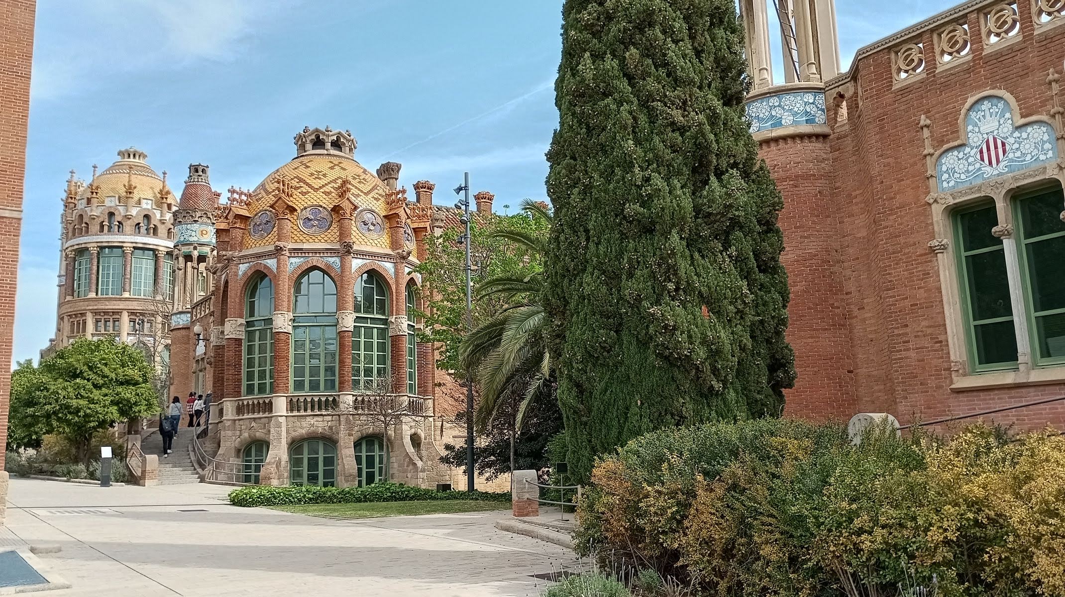 Nous avons poursuivi nos visites sur le chemin du modernisme catalan par l’hôpital de Sant Pau, un ancien hôpital de la ville [https://santpaubarcelona.org/fr/], dessiné par l’architecte catalan Lluis Domènech i Montaner en 1901. Le complexe a été beaucoup réfléchi, avec ses grands jardins agrémentés de nombreux arbres et plantes afin de purifier l’air et permettant aux patients de profiter de l’extérieur. Des souterrains tout en céramique reliaient également les différents services. Et bien sûr, l’architecture en elle-même est incroyable.
