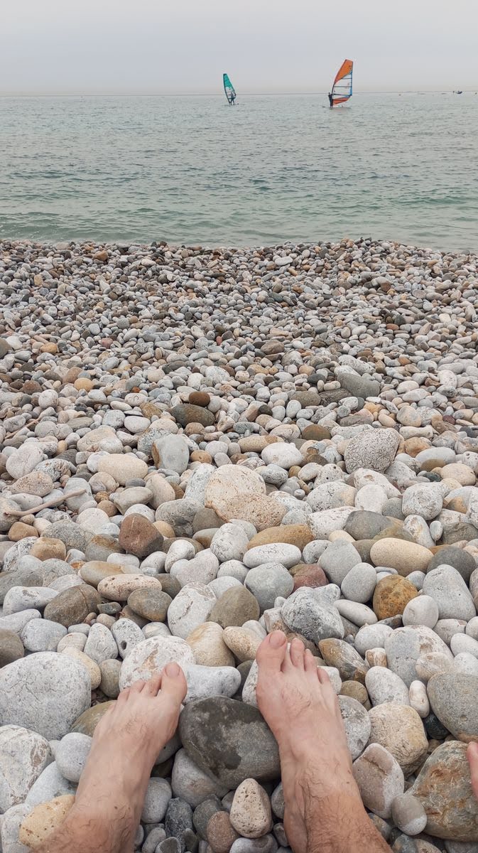 Nous prenons le train de la côte bleue pour retourner au Rouet et nous offrons une petite baignade avant de remonter au studio. Finalement, nous serions bien restés quelques jours de plus dans ce havre de paix. Demain, nous reprenons la route vers Arles pour rejoindre la ViaRhôna. La première partie se fera en train, de Carry-le-Rouet à Miramas, histoire de zapper toute la partie industrielle de Martigues, d’éviter l’important dénivelé qui nous a tant fait souffrir à l’aller, et d’échapper tant que nous le pouvons au vent qui souffle en rafales à 50 km/h. Malheureusement, il faudra bien l’affronter un jour. Les prévisions nous disent qu’il n’est pas prêt de s’arrêter.
