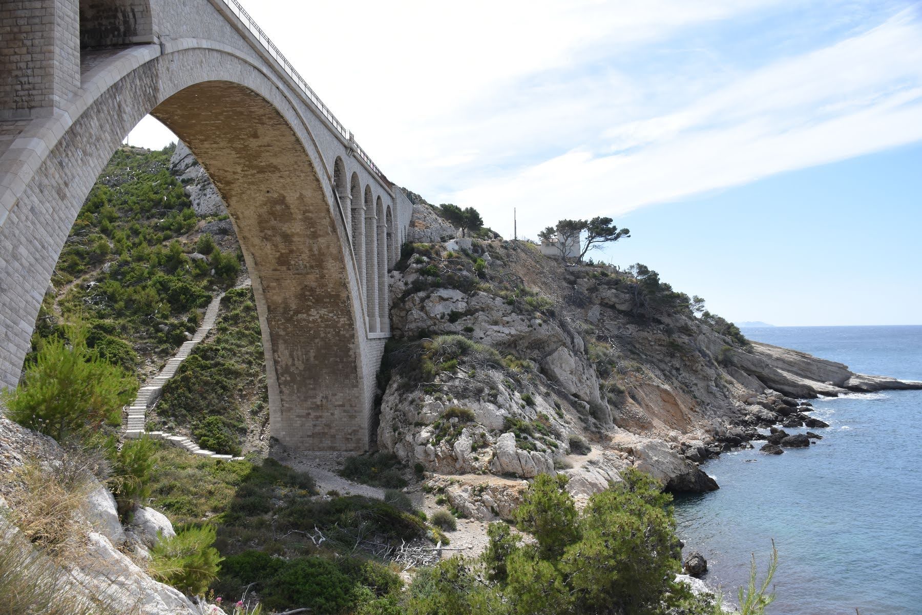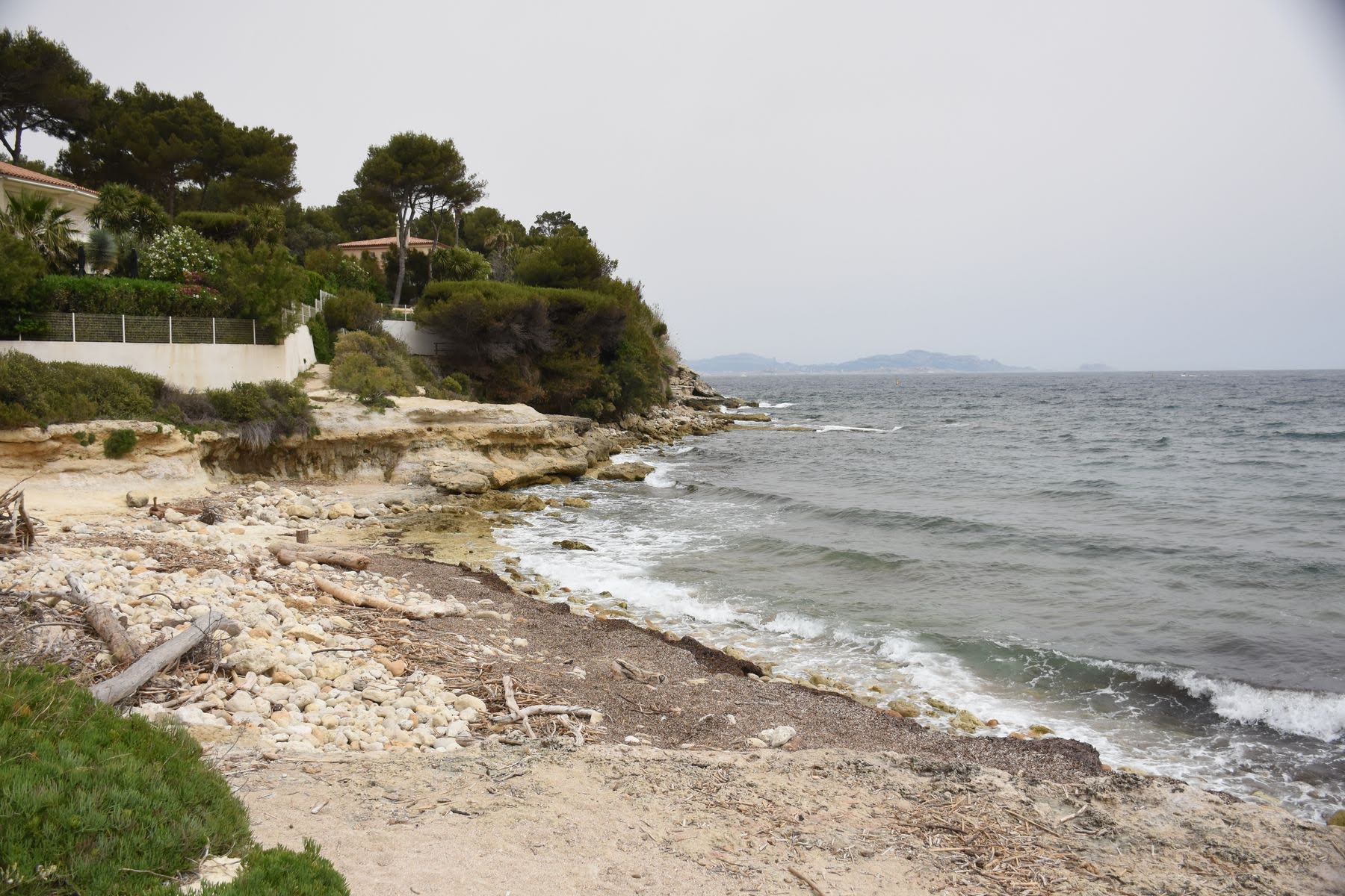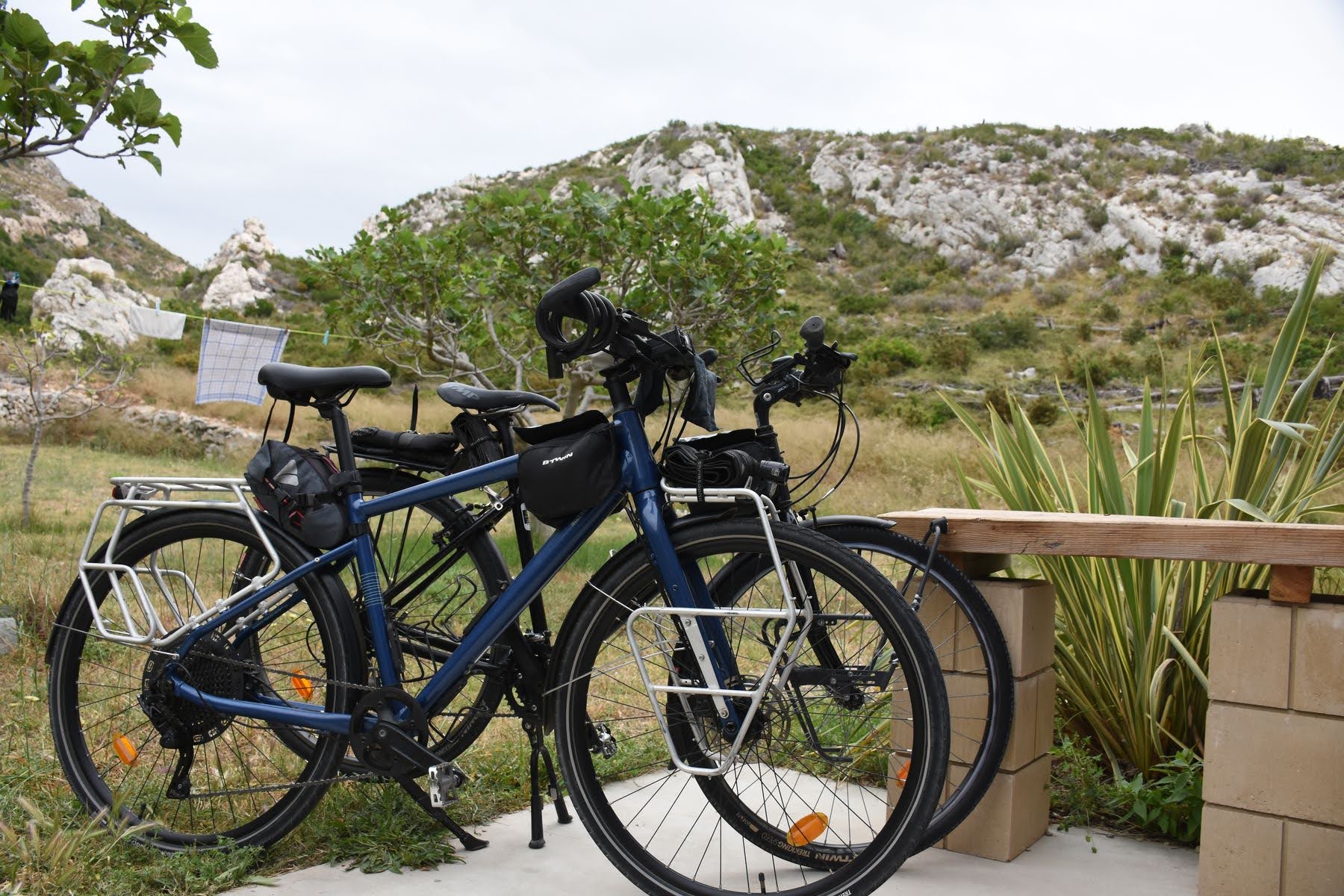 Avant de quitter la Méditerranée, nous voulons nous reposer dans un endroit calme. On nous a conseillé les calanques au nord de Marseille, entre Sausset-les-Pins et Niolon. Nous choisissons Le Rouet à mi-chemin entre les deux villages. Initialement, nous voulions camper mais le camping est complet. Tant mieux pour nous, car nous avons trouvé un petit studio chez l’habitant avec jardin privé et vue sur la vallée de l’Aiglon, et pour seule compagnie les chèvres sauvages de Rove qui viennent brouter dans le jardin et la chatte du propriétaire qui vient nous rendre visite tous les jours.