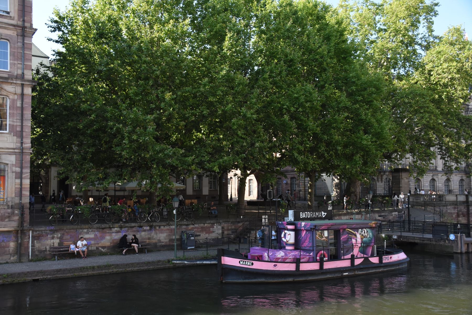 Après cela, et pour terminer en beauté, direction Strasbourg. Impossible de trouver un camping ou un hébergement bon marché. Nous louons donc une chambre chez l’habitant pour trois nuits, histoire de nous laisser deux jours pleins pour visiter la ville. Elle non plus ne nous déçoit pas. D’abord, nous apprécions le fait qu’elle soit hyper adaptée aux cyclistes. Tout est fait pour s’y déplacer à vélo, et c’est d’ailleurs ce que font les Strasbourgeois. Il y a des pistes cyclables partout et c’est vraiment le moyen de déplacement le plus rapide en ville. Par contre, on galère un peu pour trouver des porte-vélos. Un peu paradoxal… Mais on trouve toujours une solution.