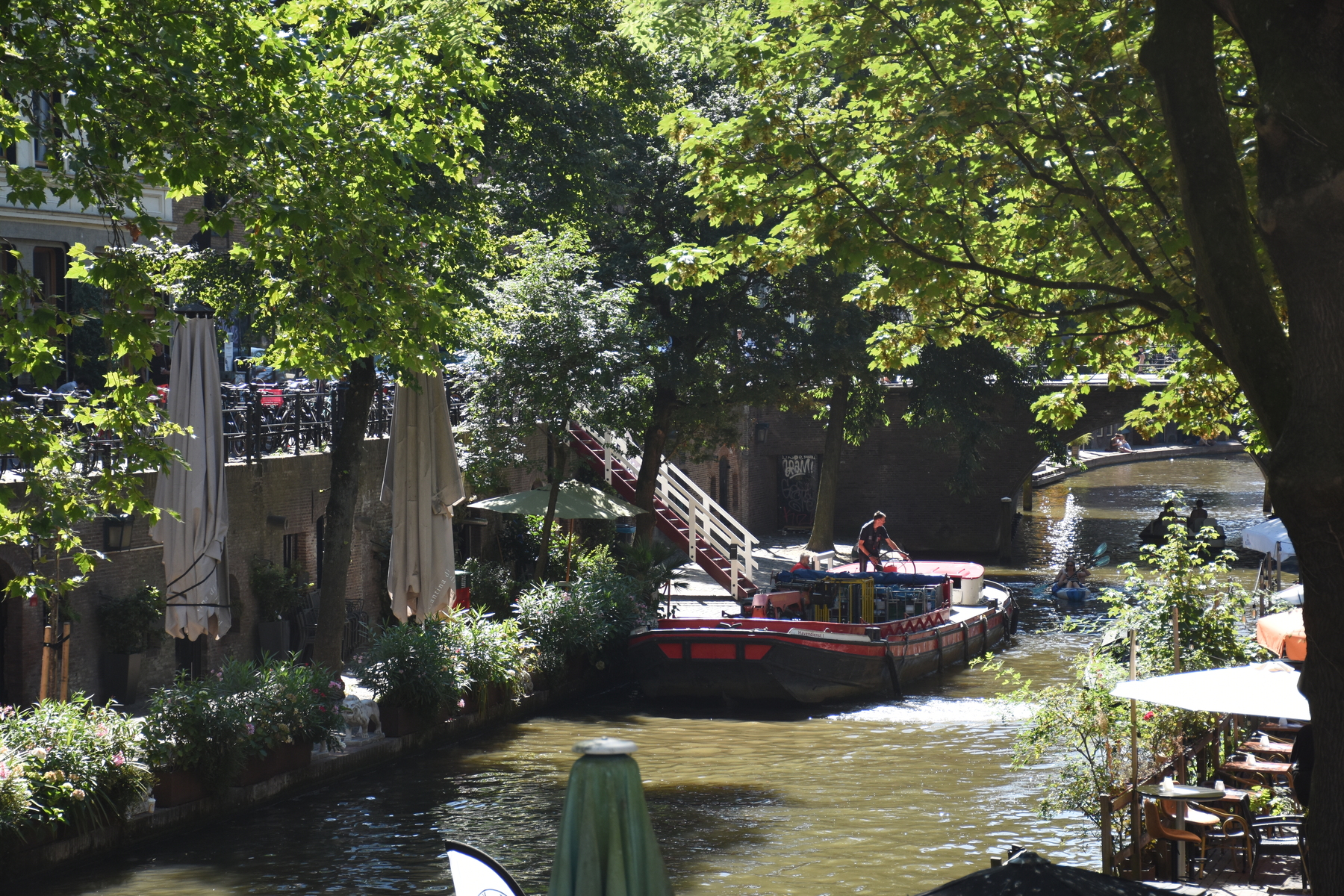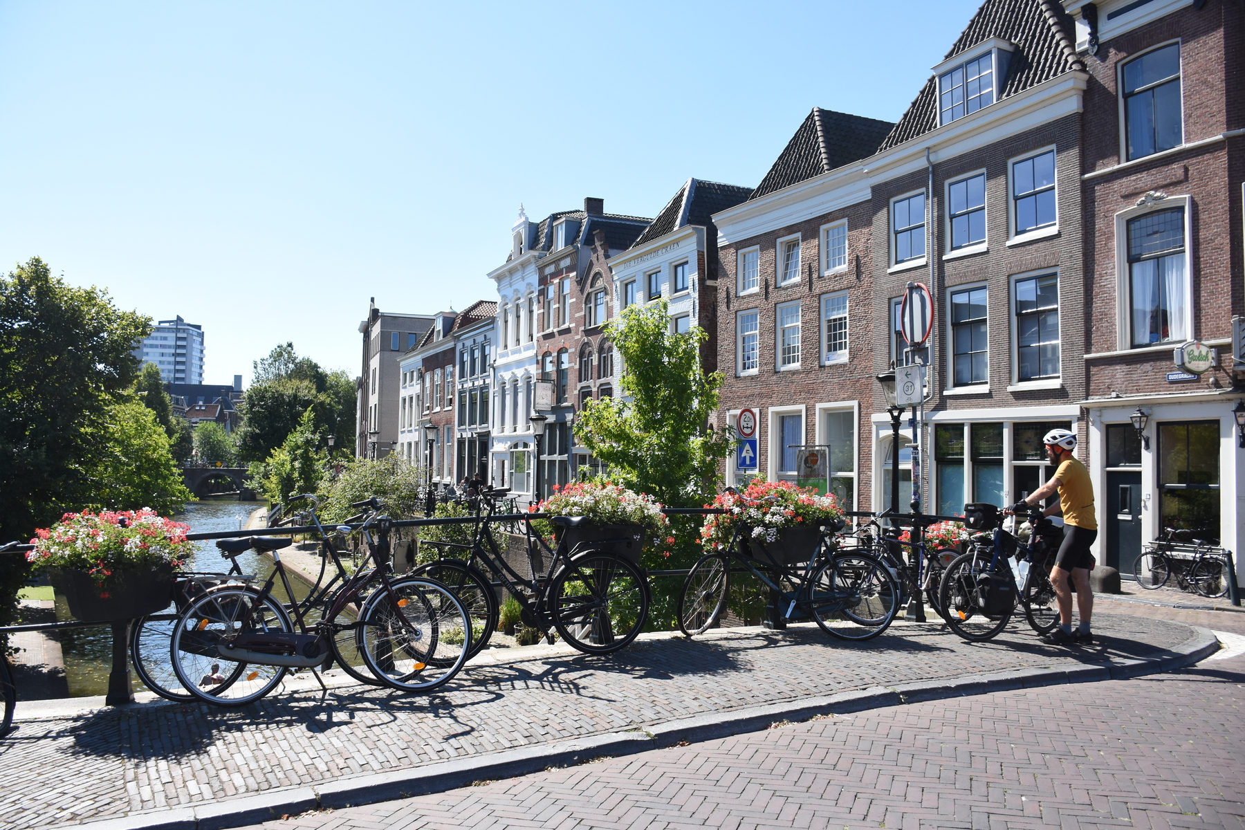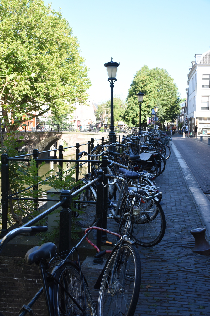 Nous poursuivons notre découverte du pays avec la visite d’Utrecht, à vélo, car la matinée est déjà bien avancée et nous avons encore quelques kilomètres à parcourir. Le centre est petit et se fait très bien sur deux roues. D’ailleurs, quelques mots sur l’aménagement cyclable. Les Pays-Bas sont connus pour être le pays du vélo. Et cela se vérifie. C’est bien simple, il y en a partout. Les cyclistes ont leur propre réseau cyclable à travers le pays et ne sont pas autorisés à circuler sur les routes sauf si, et seulement si, les deux réseaux (vélo et voiture) fusionnent, ce qui arrive dans les petites rues des centres-villes et villages où la circulation est faible. C’est vraiment un plaisir d’y rouler. Attention toutefois de ne pas s’y perdre tellement le réseau cyclable est dense. Mieux vaut abandonner le GPS et regarder les panneaux, n’est-ce pas Stéphane?
