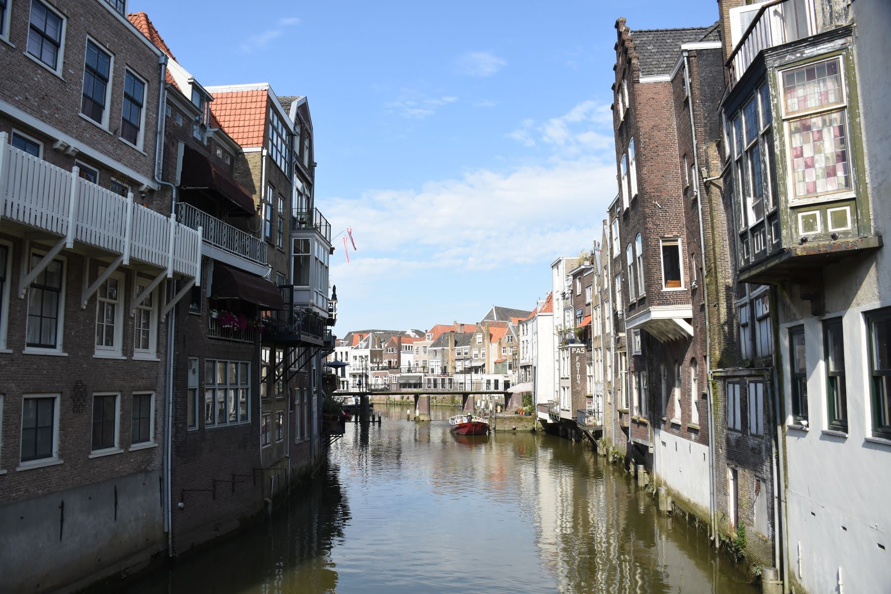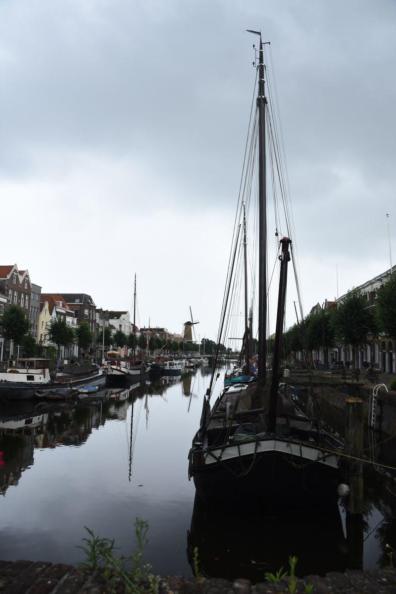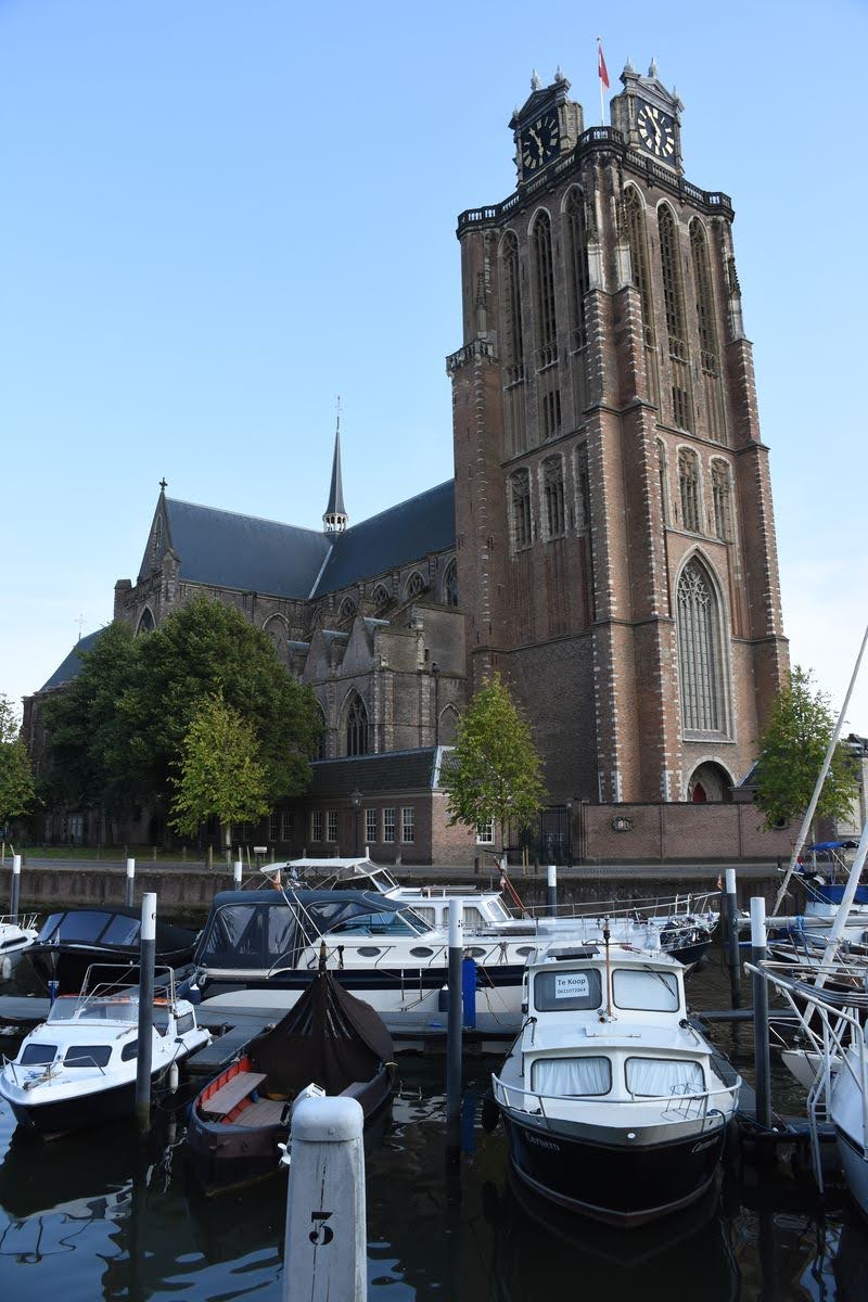 Nous quittons Utrecht et faisons route vers Dordrecht où nous passons la nuit. Dordrecht, la Venise des Pays-Bas. C’est qu’on en a vu des Venise de quelque chose! Cela m’étonne toujours, cette comparaison à Venise… Mais il fait admettre que la ville est belle avec ses canaux et ses maisons aux façades penchées. Oui, Dordrecht est une ville bancale. Quand on arrive dans la vieille ville, on remarque vite que toutes les façades sont de travers, comme si les maisons étaient en train de s’enfoncer dans la terre. Ici, il faut raboter, couper les bas de portes pour pouvoir les fermer. Construites sur pilotis dans une zone marécageuse, les maisons bougent avec le temps. Et la plus grande église de la ville, Grote Kerk, n’échappe pas à la règle; elle aussi est bancale. Depuis sa construction en 1339, elle s’est inclinée de 4 mm par an en moyenne, soit de 2,25 m au total. Du coup, elle a été équipée d’un ingénieux système de cran d’arrêt pour éviter la chute. Espérons que ça marche.