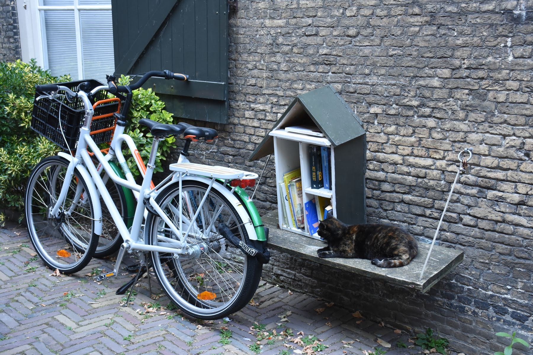 Pour notre première soirée aux Pays-Bas, nous trouvons un petit camping à la ferme comme on les aime. Il n’y a pas grand monde, nous plantons la tente entre les allées de pruniers. Deux petits chatons viennent même nous souhaiter la bienvenue. Oh qu’ils sont mignons et joueurs! Oh qu’ils ont les griffes bien aiguisées. Il prend l’envie au premier chaton d’escalader la tente et il saute à pleines griffes dessus. Et bim, trois trous dans la toile extérieure. Le deuxième, lui, préfère grimper entre les deux toiles. Pas le choix que de les chasser. Mais ils reviennent aussitôt à la charge. Aux grands maux, les grands remèdes, les gourdes de vélo ont une bonne portée de tir. Nous les arrosons donc d’eau pour les faire décamper. C’est qu’on en a encore besoin de cette tente, même si c’est du gruyère!