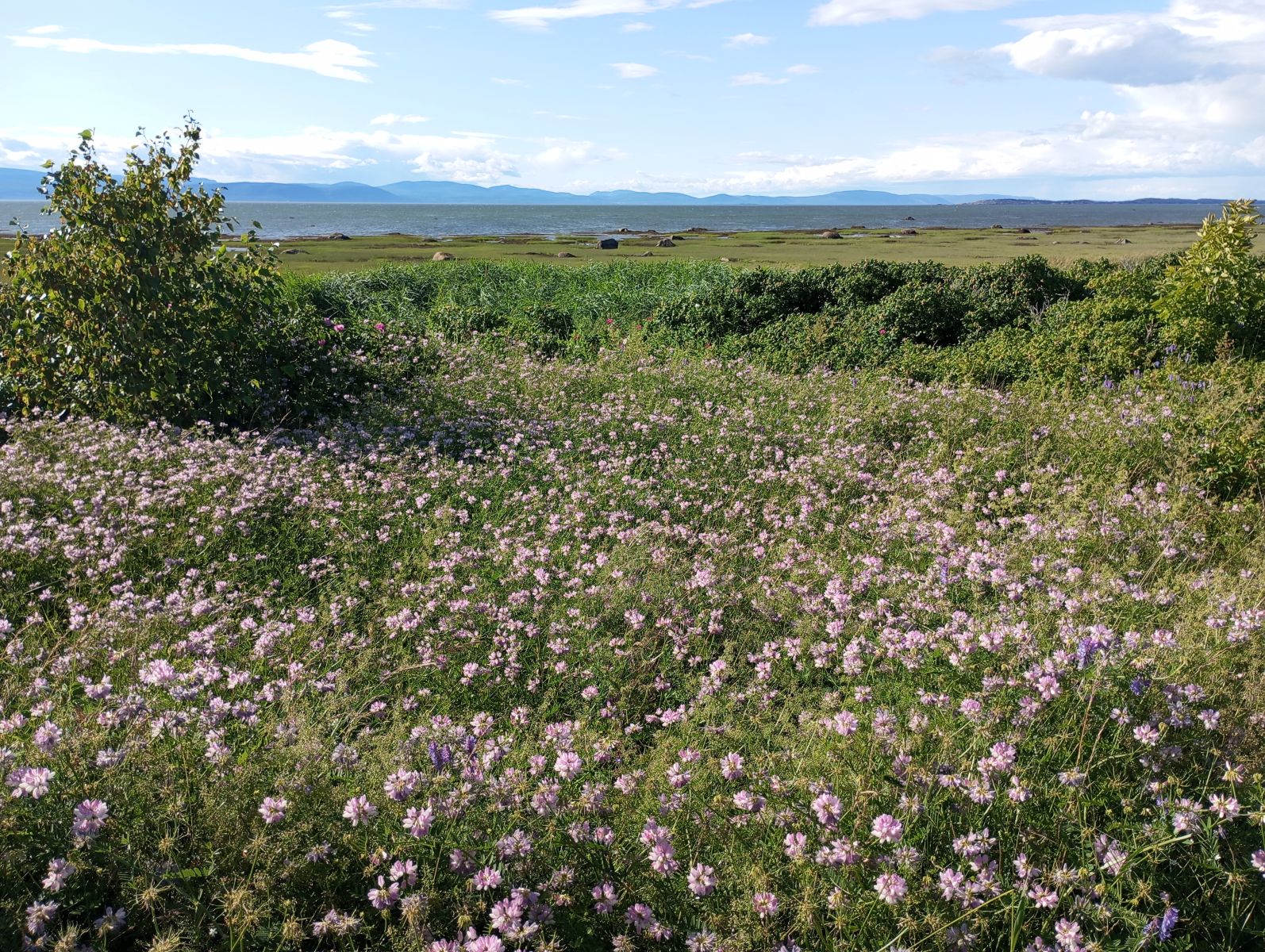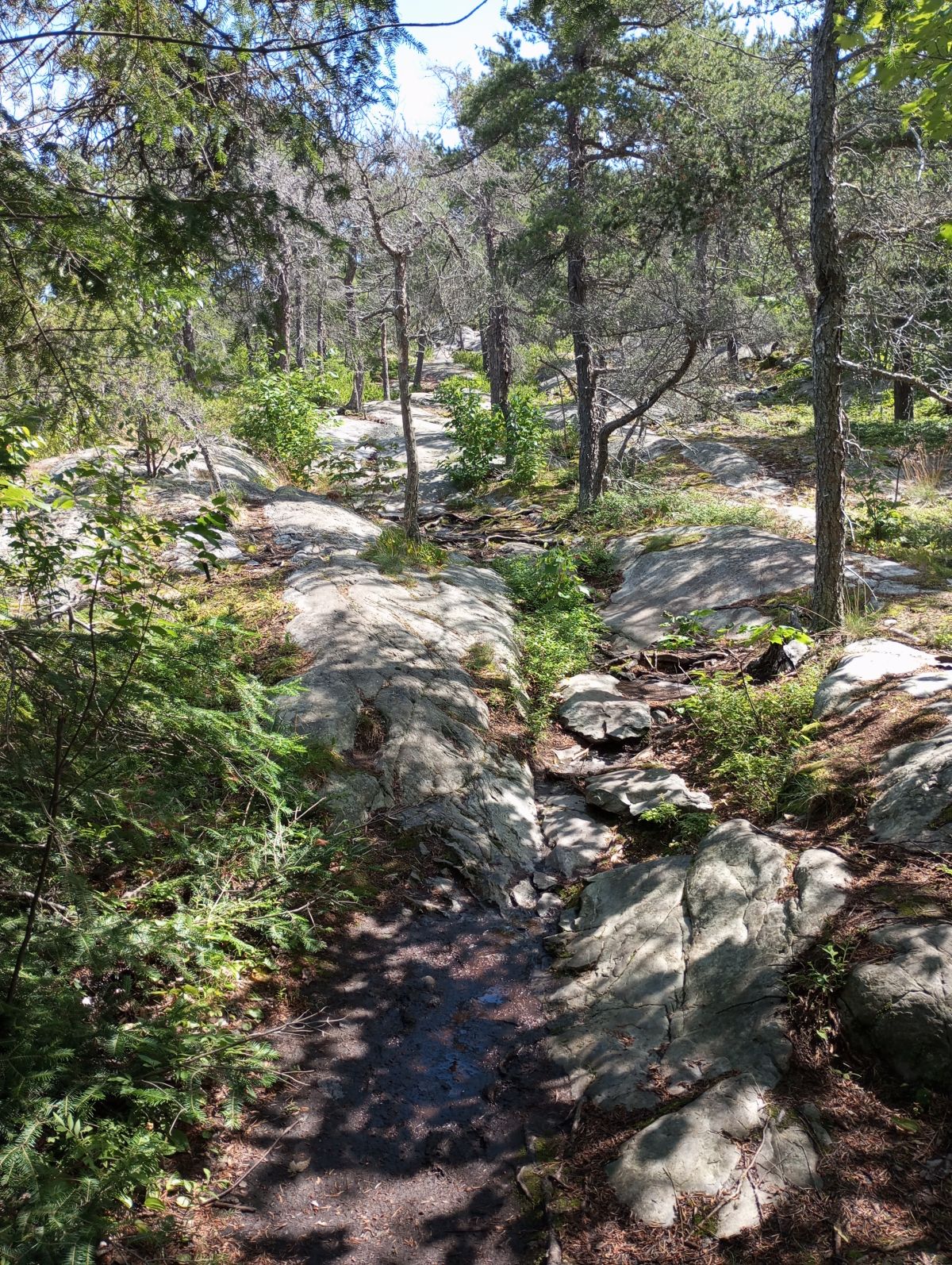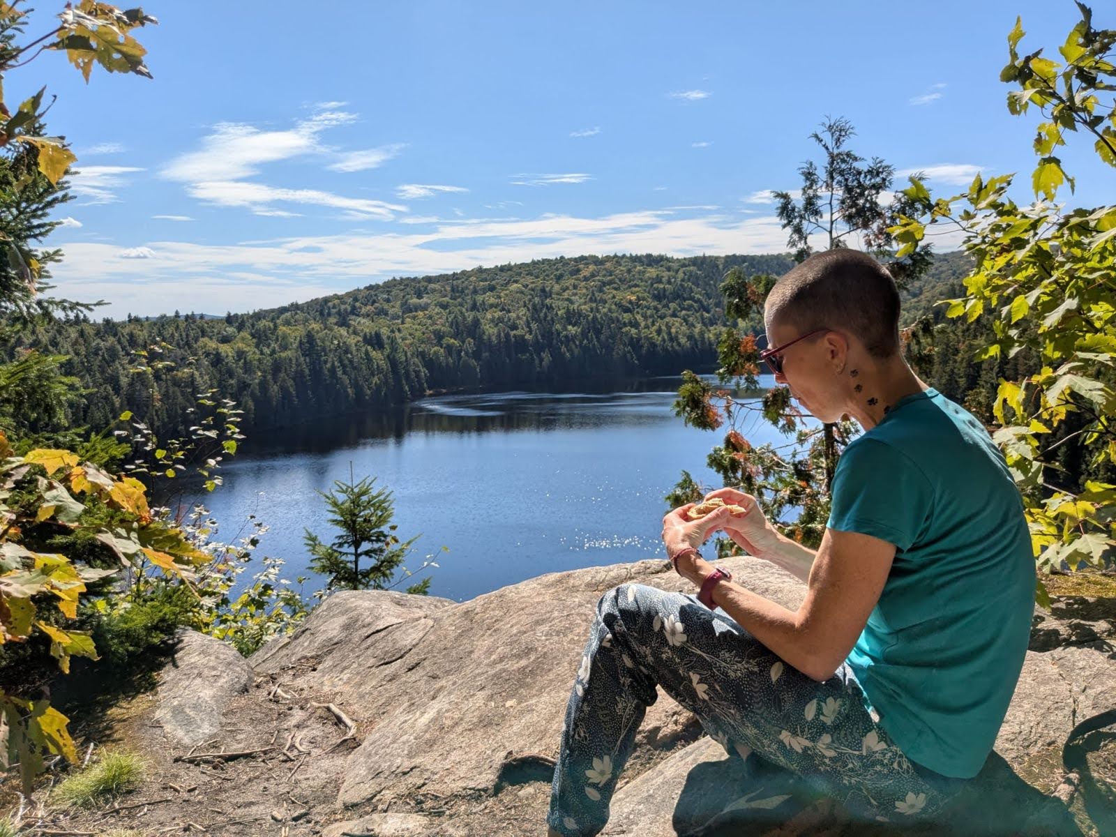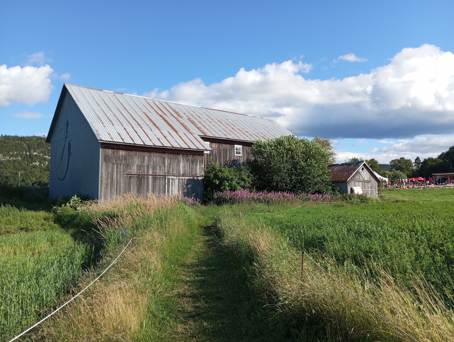 Malgré l’été, nous ne sommes pas sortis souvent de la ville. Mélanie commençant sa formation de boulangerie en septembre, nous avons préféré travailler le plus possible et mettre de l’argent de côté pour les mois où Mélanie ne pourra plus traduire. Ceci dit, nous avons pris le temps d’aller camper dans le Bas-Saint-Laurent, à Kamouraska. Nous avons beaucoup aimé cette région, très agricole avec des champs à perte de vue. Mais ce qui attire l’œil, ce sont les Cabourons, ces rochers de quartz et de grès qui ont résisté à l’érosion et qui étaient des îles à l’époque où la mer Champlain recouvrait la région il y a 10 000 ans. La légende dit que Dieu, en allant déposer les Appalaches, a laissé tomber ces morceaux de montagnes ou encore «inselbergs» ou «îles-montagnes» pour les géologues.